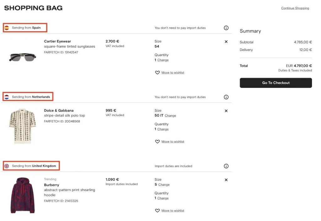 无缝多精品店结账: 在其他平台,从多个卖家购买商品可能会很繁琐。但Farfetch引入了无缝结账流程。这意味着用户可以在单笔交易中直接下单多家精品店的商品。
