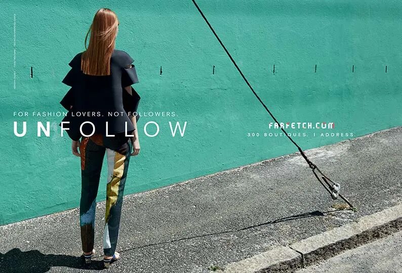 引起共鸣的市场活动: Farfetch擅长创建能与个人产生共鸣的宣传活动。例如,他们的“取消关注”活动。他们不仅仅推广产品,而是推崇个人风格的本质。Farfetch利用生动的视觉效果和引人注目的slogan,鼓励用户“取消关注”潮流,定义自己的时尚故事。这种方法产生了共鸣,鼓励时尚爱好者超越流行的规范,展示自己独特的时尚感觉。