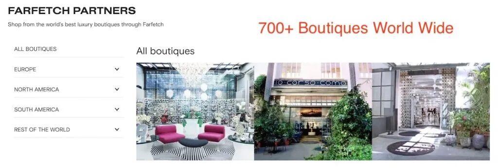 Farfetch为这些精品店提供了一个解决方案。他们为这些精品店提供在全球平台上展示他们产品的机会,并代为处理全球电商的复杂问题,从物流、客服到数字营销。这个提议,对许多希望扩大市场份额但又不想自己管理线上基础设施的精品店来说,几乎是不可抗拒的。