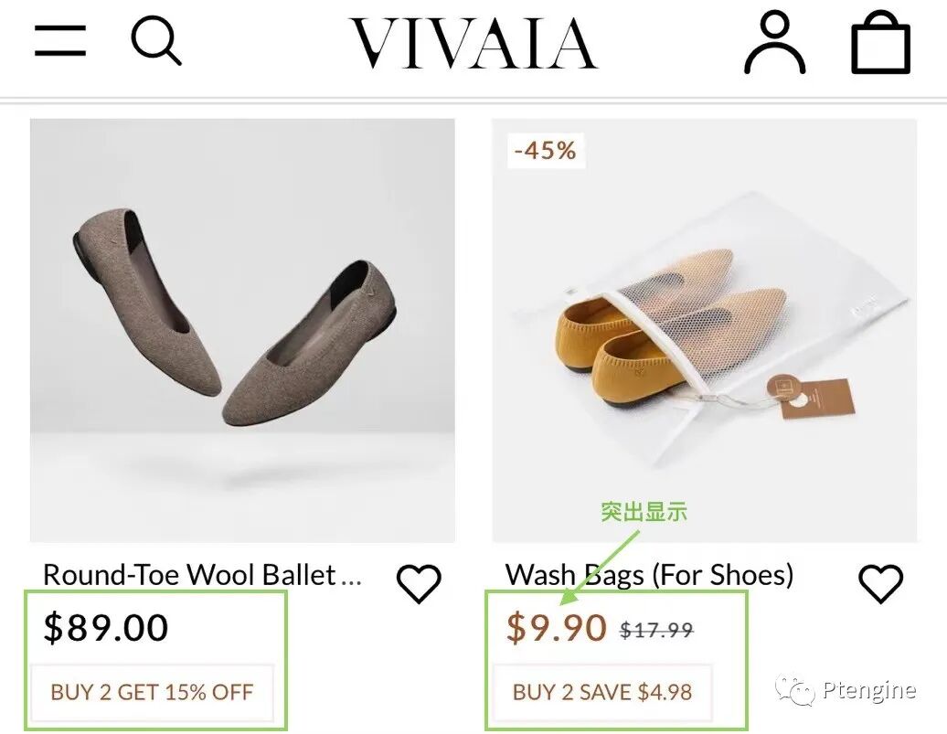 价格是消费者在购买时的重点关注因素,因此需要在列表页的商品展示区域内标明价格。若商品有折扣,需在价格旁显示出折后价格,这样可以提高商品对消费者的吸引力。大部分网页对折扣商品的价格标注时都会采用“$25 $35”这种形式来凸显。