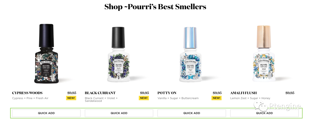 在每个商品展示区域添加“QUICK ADD”、“Buy now”、“+”等等这样的CTA按钮以便顾客更便捷的加购或直接购买。