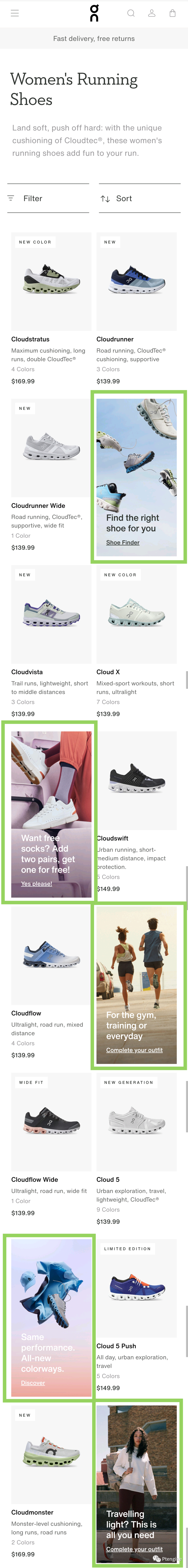 在列表页中添加其他内容的引导可以缓解消费者视觉的疲劳,同时也可以向他们展示更多站内商品。