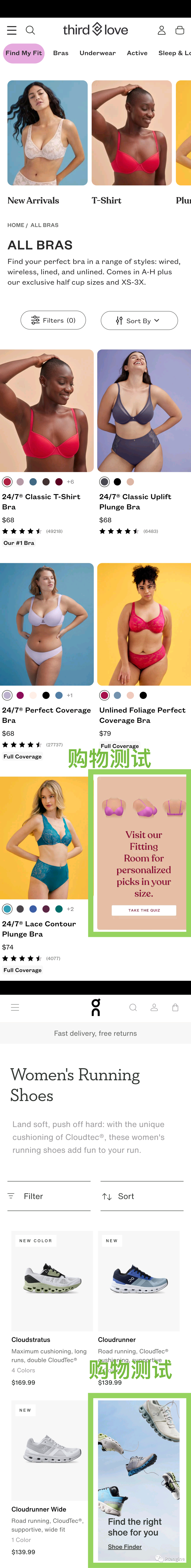 在这一部分,我们可以设计出不同类型的引导来吸引消费者的注意力。例如案例中“Want free socks?Add two pairs, get one for free !”或“For the gym, training or Everyday Complete your outfit”。