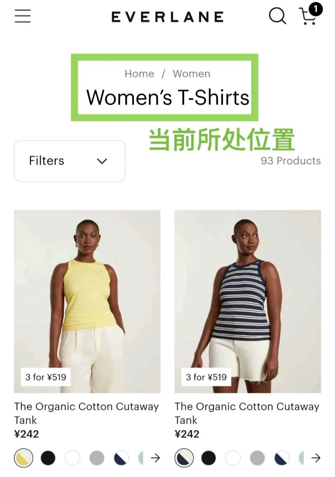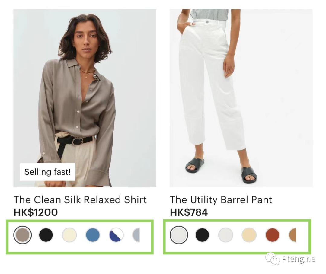 我们要保证在列表页上显示商品的所有颜色,且消费者可以轻松切换不同颜色的商品的展示图片,以此减少消费者因信息不完整而错过该商品的情况。