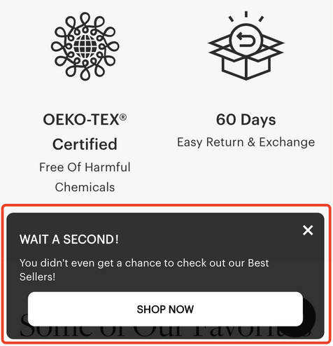 某服装DTC品牌在用户即将离开时,弹出一个退出弹窗引导用户去看销量最好的商品