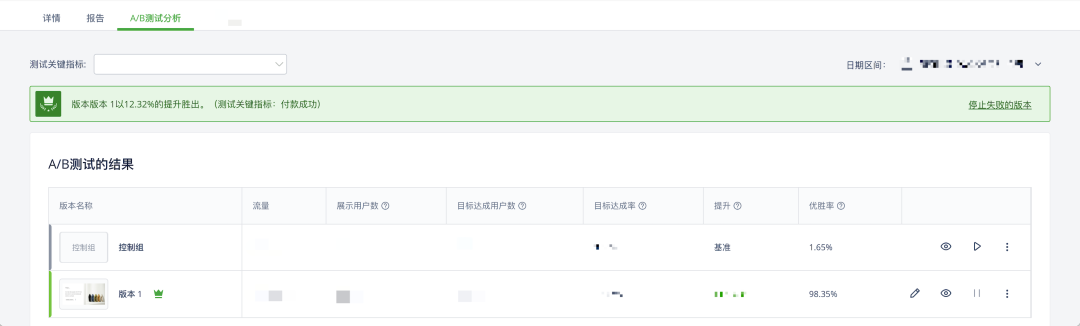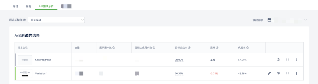 因为每家独立站可以测试的点不一样,得根据具体情况去具体分析。反正最终的结果是,在收集到了足够的测试样本后,消费者的购买转化率有了统计学意义上显著性的提升。而在确认了胜出版本之后,客户也把流量改到了100%来保证能尽可能多得挽回本来即将离开的消费者。