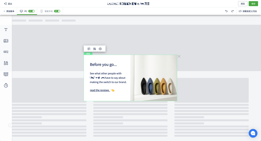 完善弹窗的内容:我们的这个客户主要是针对欧美市场销售女鞋的品牌,因为在欧美市场的口碑非常好,所以其他用户的真实的声音是很好的让新用户产生兴趣的方法,所以主要的弹窗内容就是引导新用户去看其他已购用户的评价。