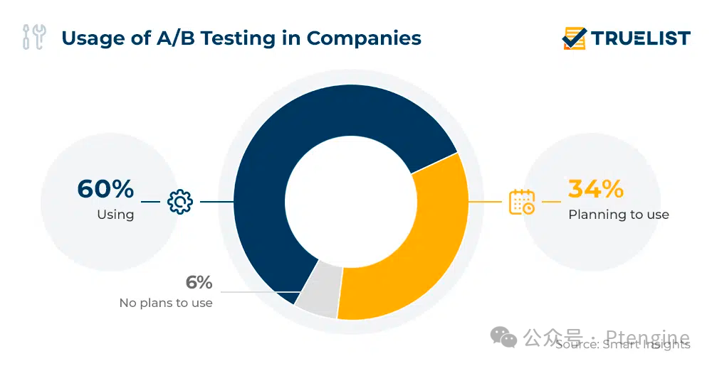 A/B 测试是转化率优化中最常被使用的手段。根据Smart Insights 的最新调查报告,60%的公司正在使用A/B测试,而另外34%的公司则计划采用。